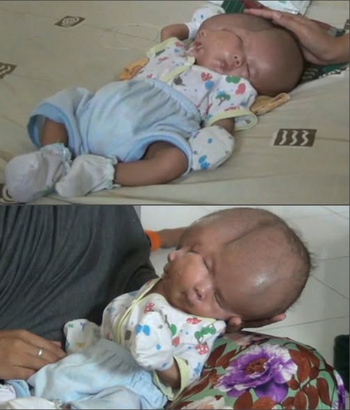 Gilang has two facial structures and additional brain tissue within one small body 🥺