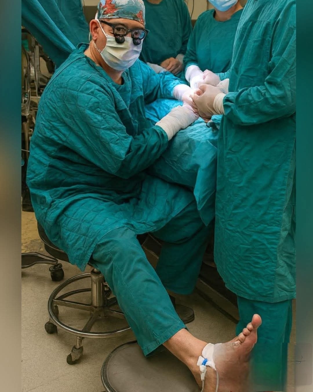 👉 to his foot—so he could continue the surgery without interruption 💉