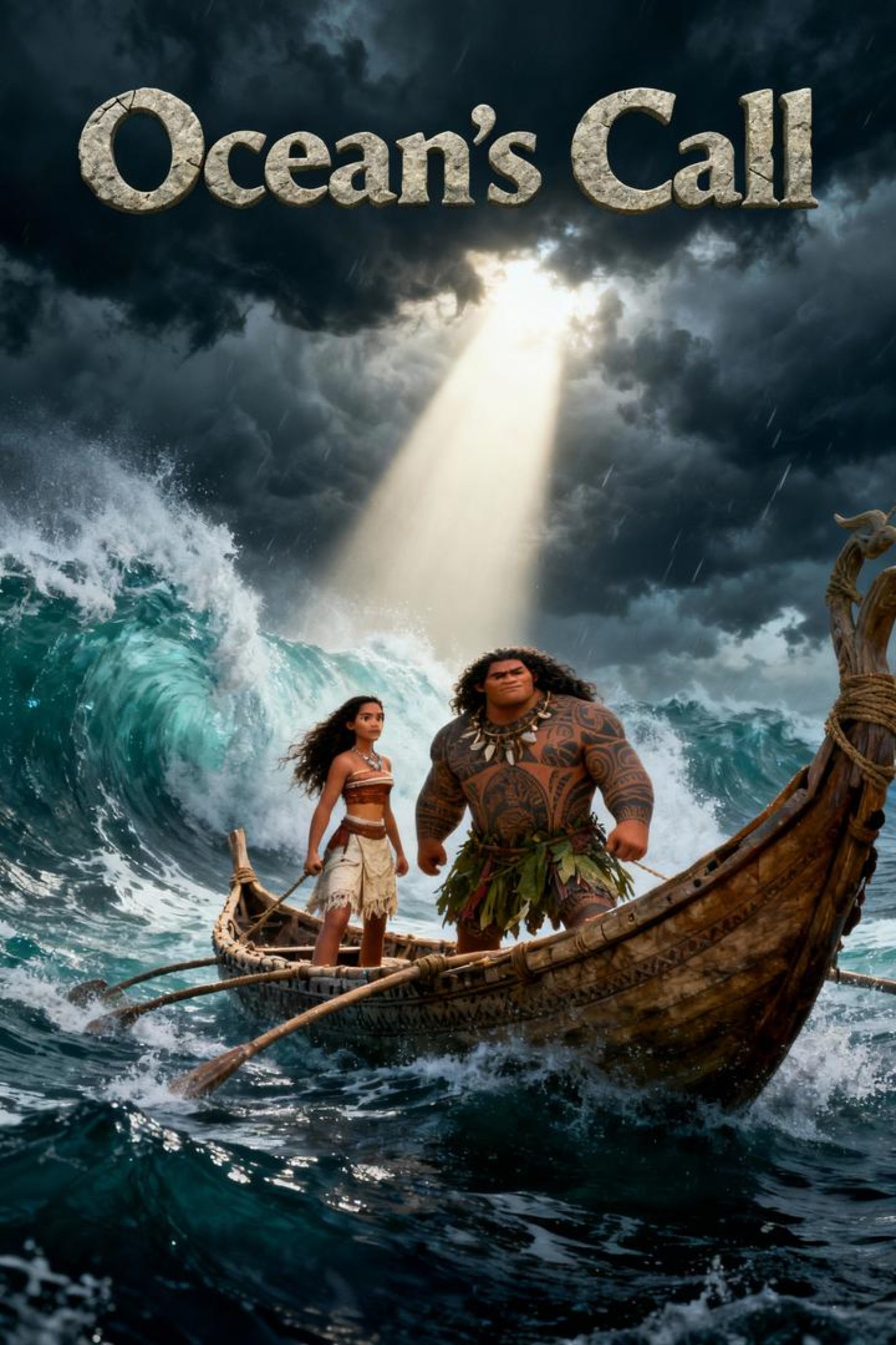 . Moana’s heart beats in rhythm with the ocean, her eyes reflecting the courage of a young leader facing storms both literal and within