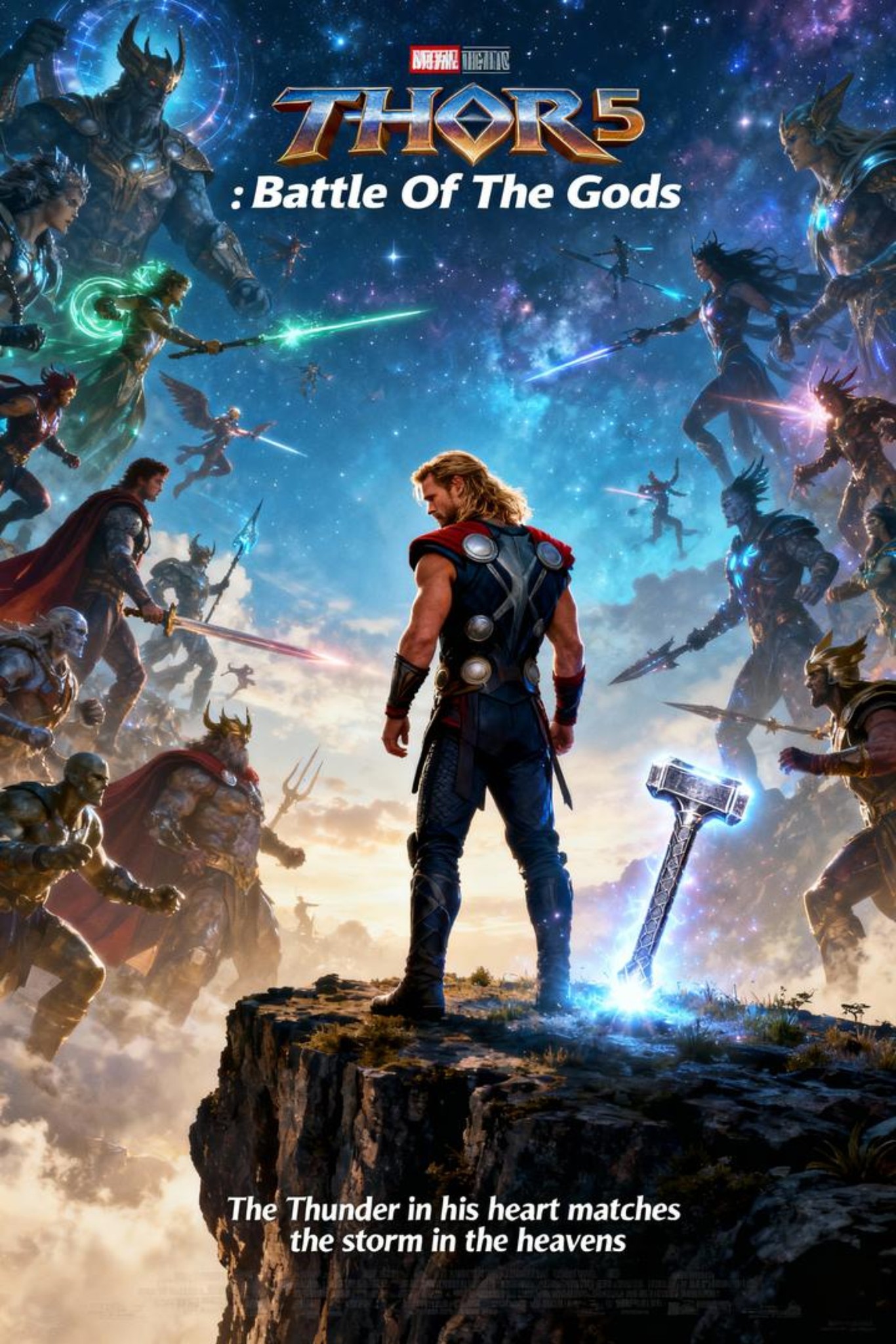 The Nine Realms are shattered mirrors. Valhalla burns. The World Tree bleeds gold. Rogue immortals (drunk on power and grief) tear at the roots of existence itself, demanding a universe remade in their image. Thor stands alone on the ruins of the Bifrost, crown heavy with the ashes of everyone he failed to save. Jane’s heartbeat still echoes in the silence between lightning strikes. Love Loki is gone again (this time forever). Every breath tastes of ozone and funeral pyre. Mjolnir is cracked, Stormbreaker weeps lightning like tears. The God of Thunder has become the God of Mourning, and the storm inside him is finally louder than the one he commands.