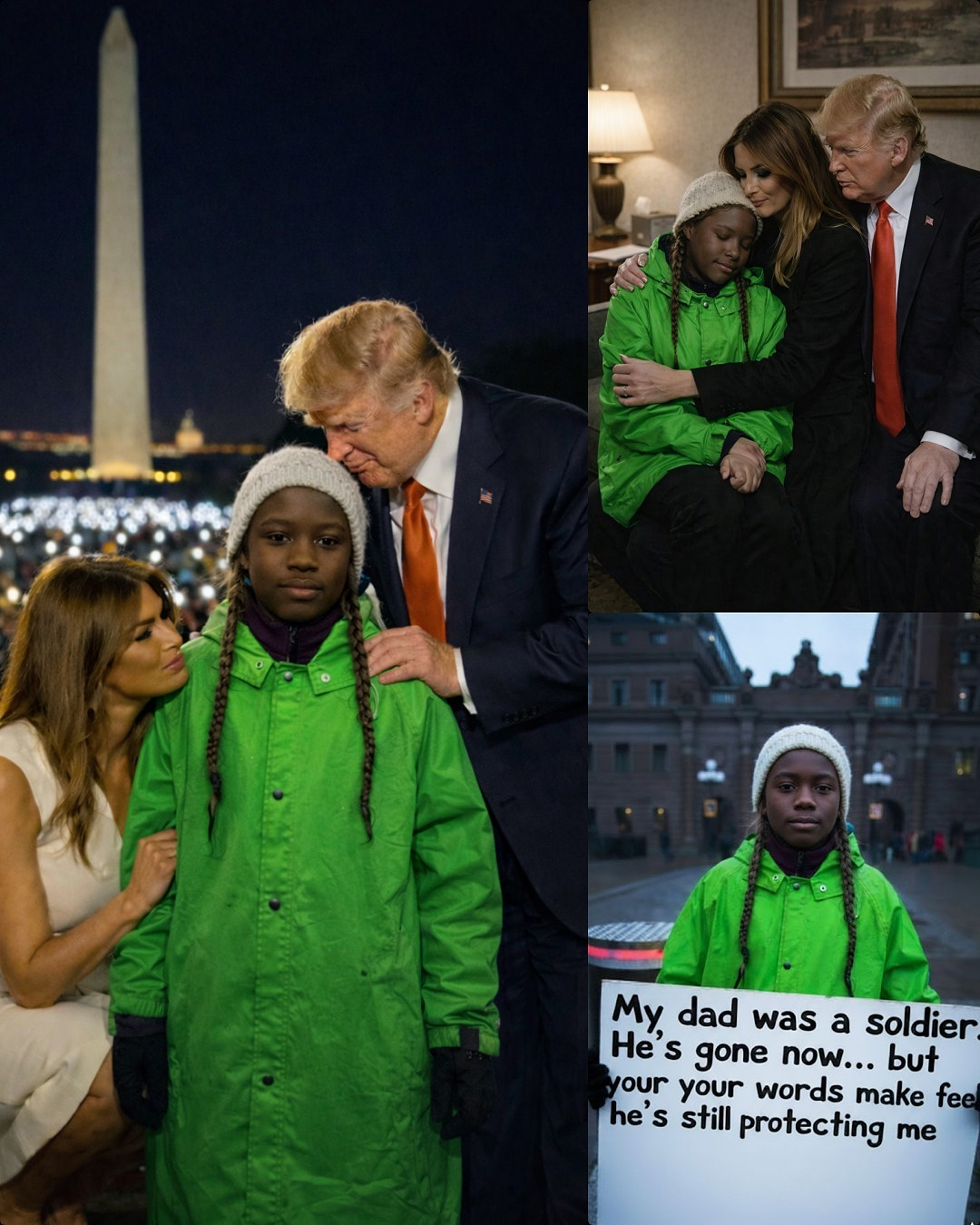 The momentum of the evening shifted when the President noticed an 11-year-old girl standing near the front of the stage. She held a handwritten sign that acted as a bridge between the present moment and a lost history: “My dad was a soldier. He’s gone now… but your words make me feel like he’s still protecting me.”
