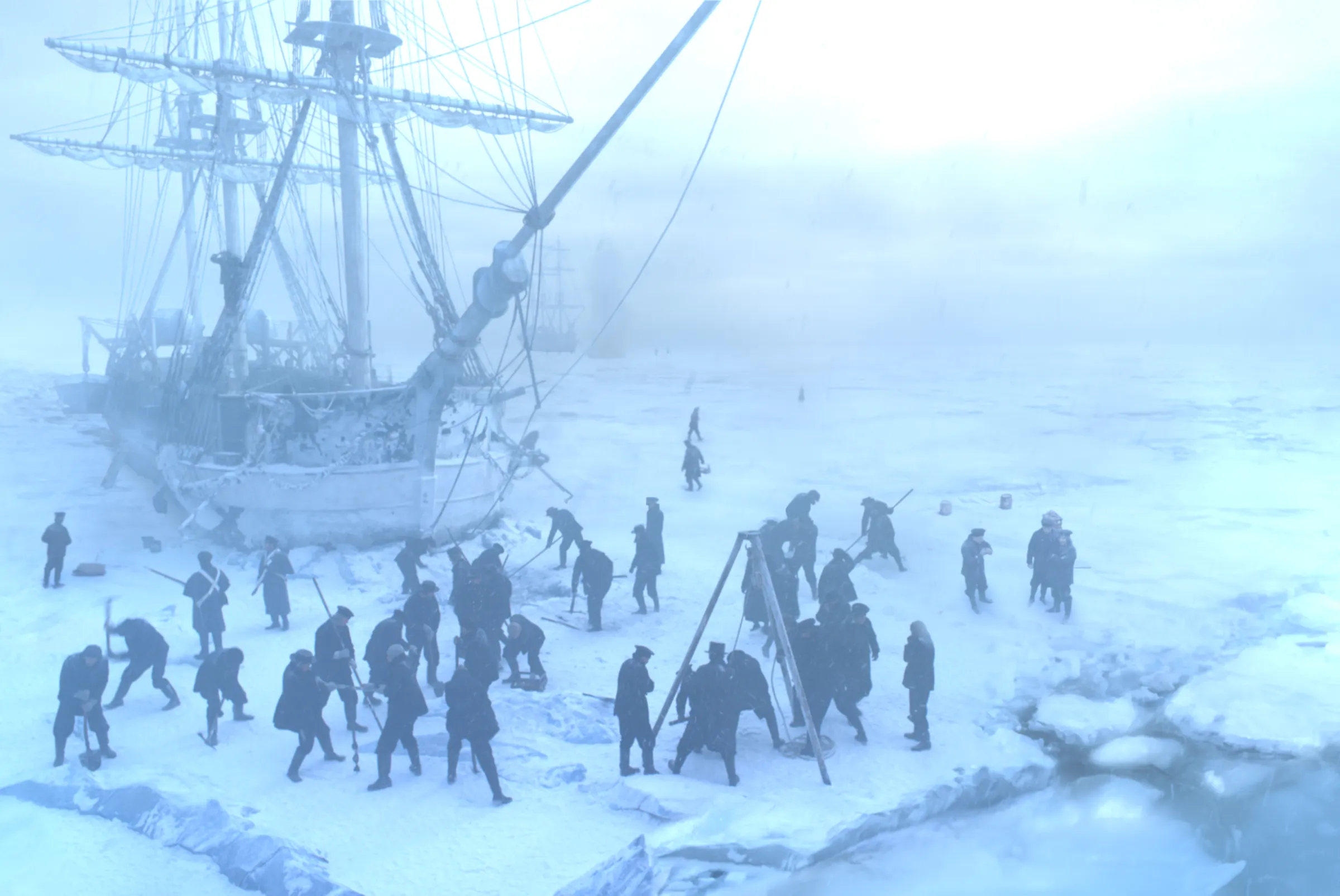 The atmosphere is suffocating: endless white horizons that feel like they’re closing in, the creak of wooden ships trapped in pack ice, the howl of wind through rigging, the low, wet sounds of something moving just outside the lantern light. The show doesn’t rely on jump scares; it builds dread through silence, isolation, and the slow realization that the real monster might be the one wearing a naval uniform. When the supernatural element finally shows itself, it’s not cartoonish—it’s primal, intelligent, and terrifyingly personal.