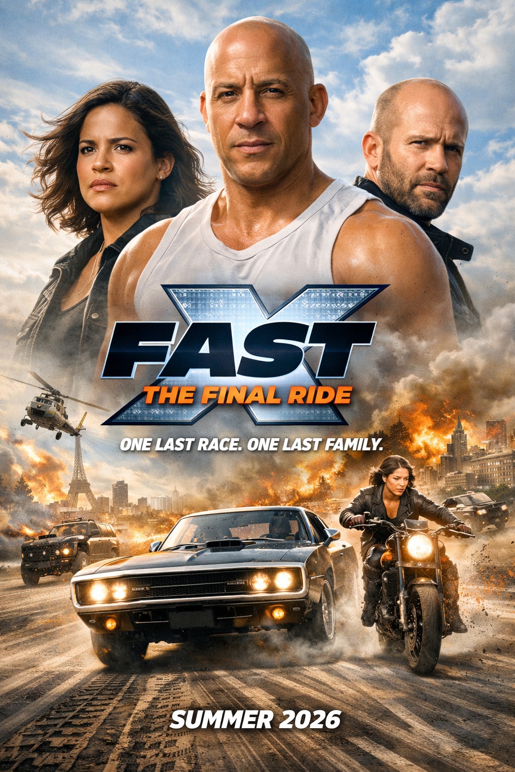 In FAST X: THE FINAL RIDE, the road that began with speed now leads straight into destiny. Engines roar not for glory, but for survival, as love, loyalty, and sacrifice collide in one last, unstoppable run. This isnโt just a race โ itโs a farewell written in tire marks and heartbeats