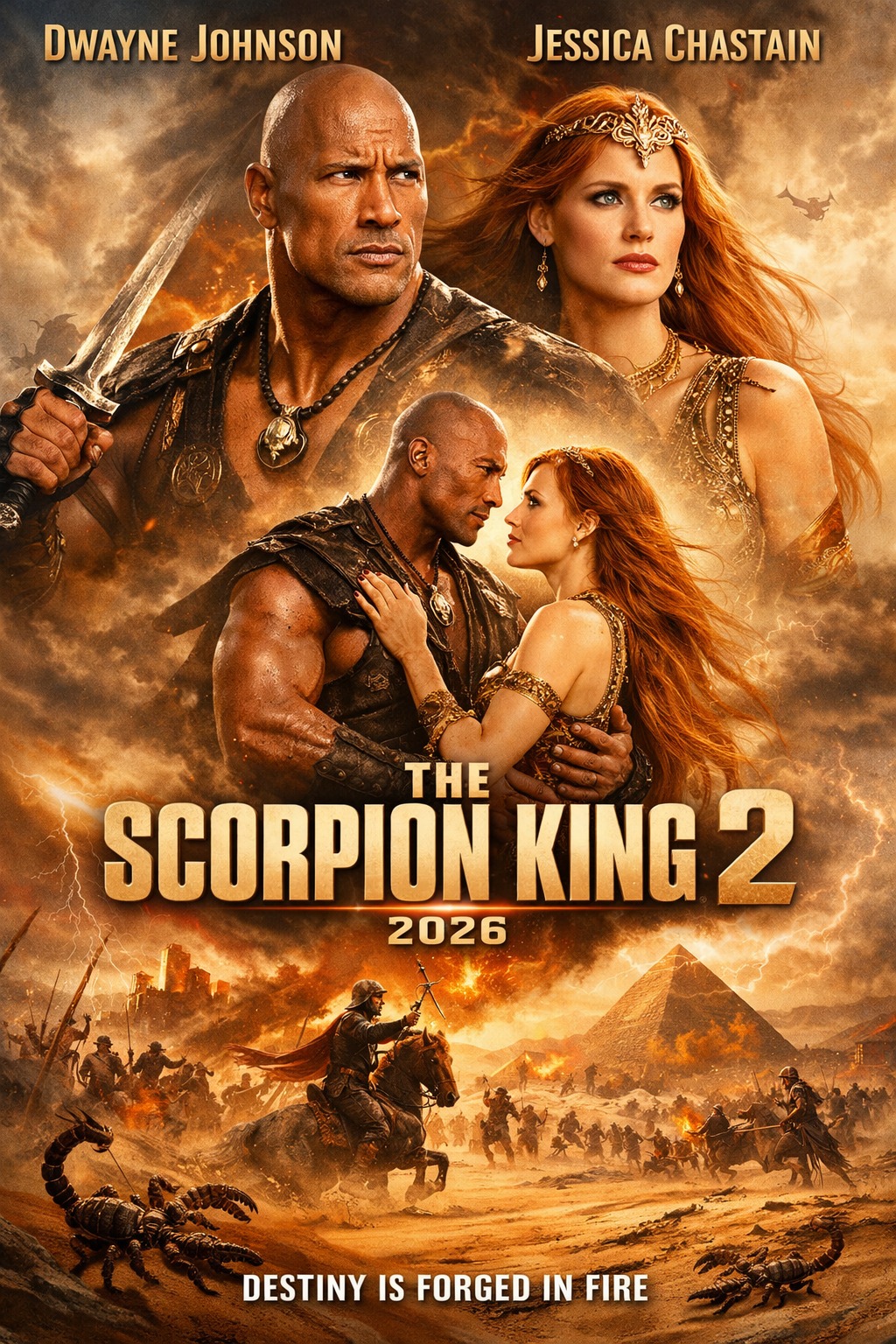 A warrior’s heart beats in the shadows of destiny. In the ancient land of sands and secrets, the Scorpion King’s legacy lives on. As the mighty king, Mathayus (Dwayne Johnson), fights to maintain peace, an unseen darkness rises from the depths of time—an enemy unlike any he has faced before. Torn between his sworn duty to protect his kingdom and the woman he loves, Princess Layla (Jessica Chastain), Mathayus finds himself caught in a web of deceit, betrayal, and war. The gods may have chosen him to rule, but it is his heart that will decide if he survives.