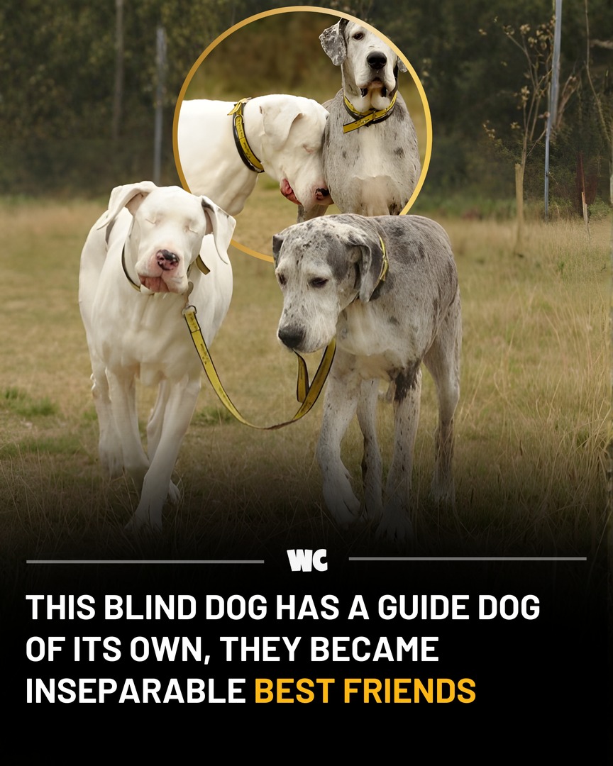 At first glance, it looks like a simple walk — but the story behind it has touched hearts around the world 🤍🐾. Lily, a Great Dane who lost her sight, now faces each day with quiet bravery, guided lovingly by her loyal companion, Madison.