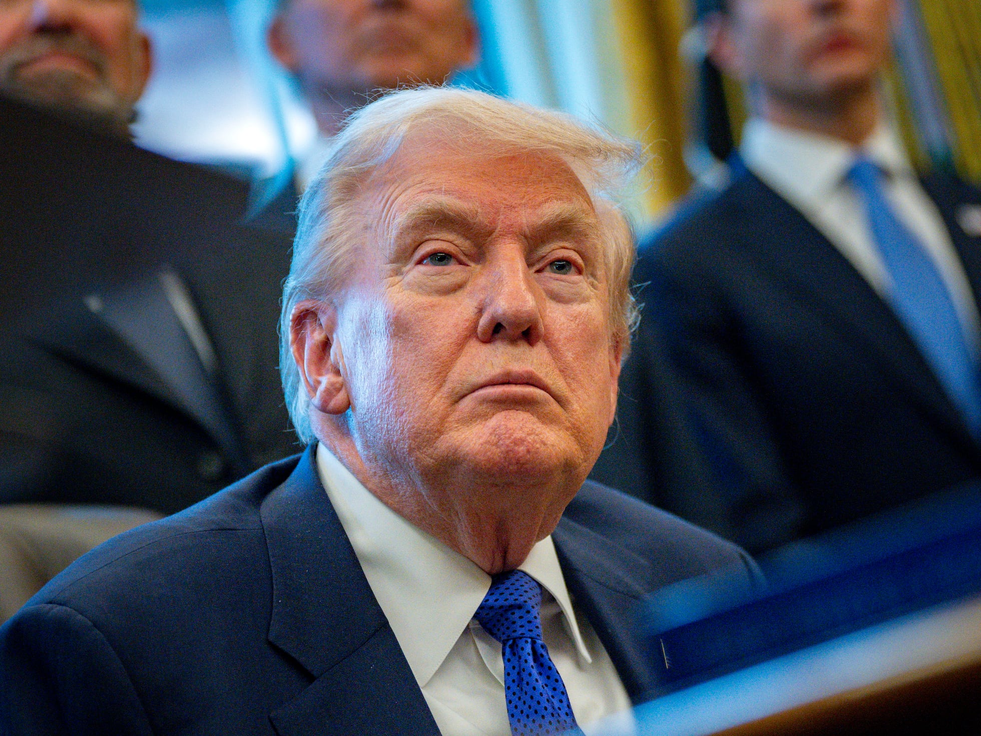 Donald Trump leans into the microphone, one hand raised as if delivering a verdict…hl