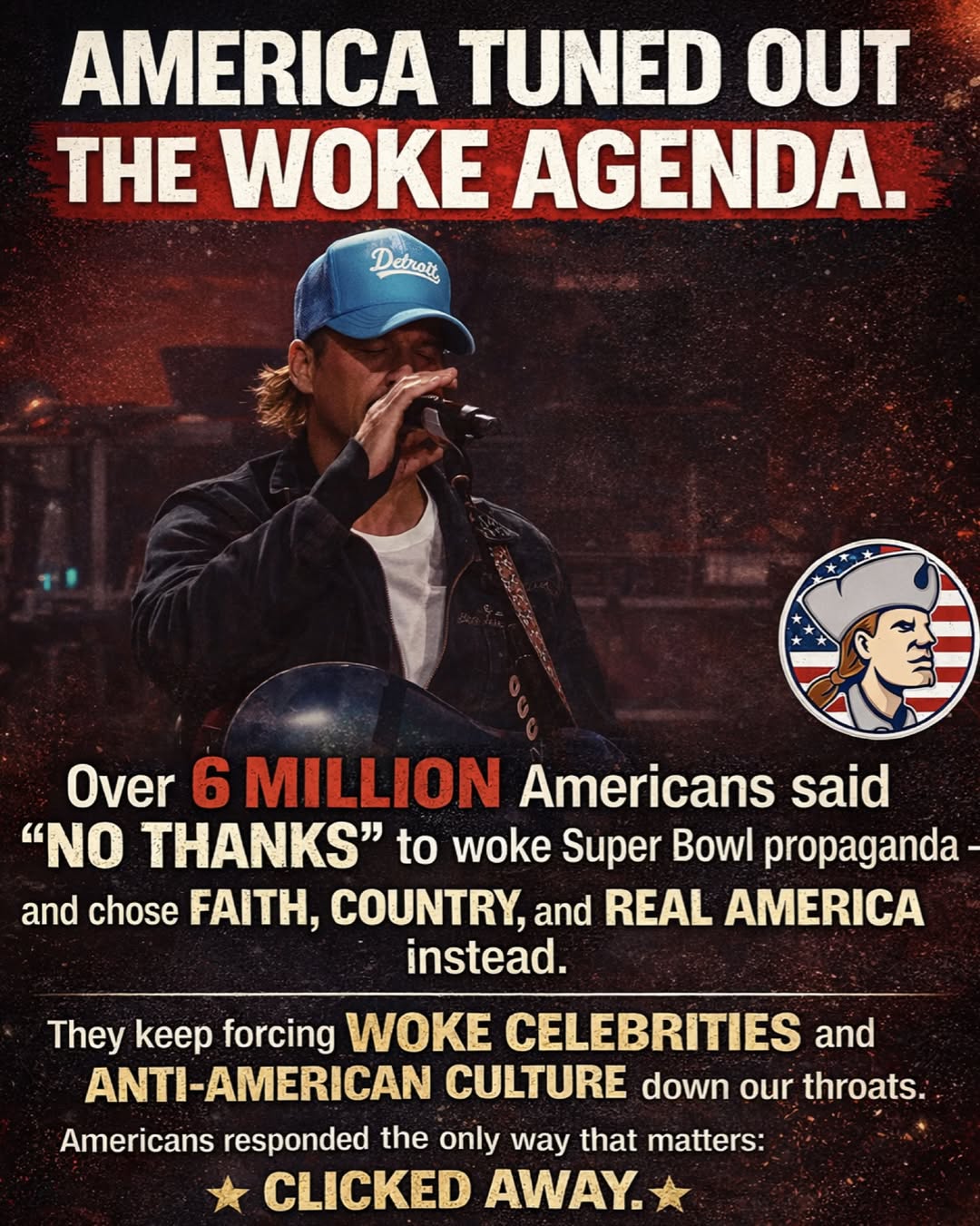 During this year’s Super Bowl halftime show, millions of viewers reportedly switched channels, with many choosing to watch Kid Rock’s alternative broadcast instead.