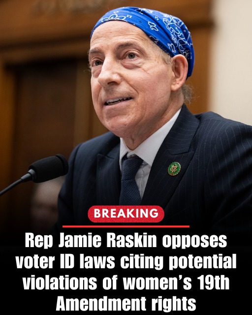 Democratic Representative Jamie Raskin’s has voiced strong opposition to voter ID laws, arguing that such measures could infringe upon the 19th Amendment, which guarantees women the right to vote.