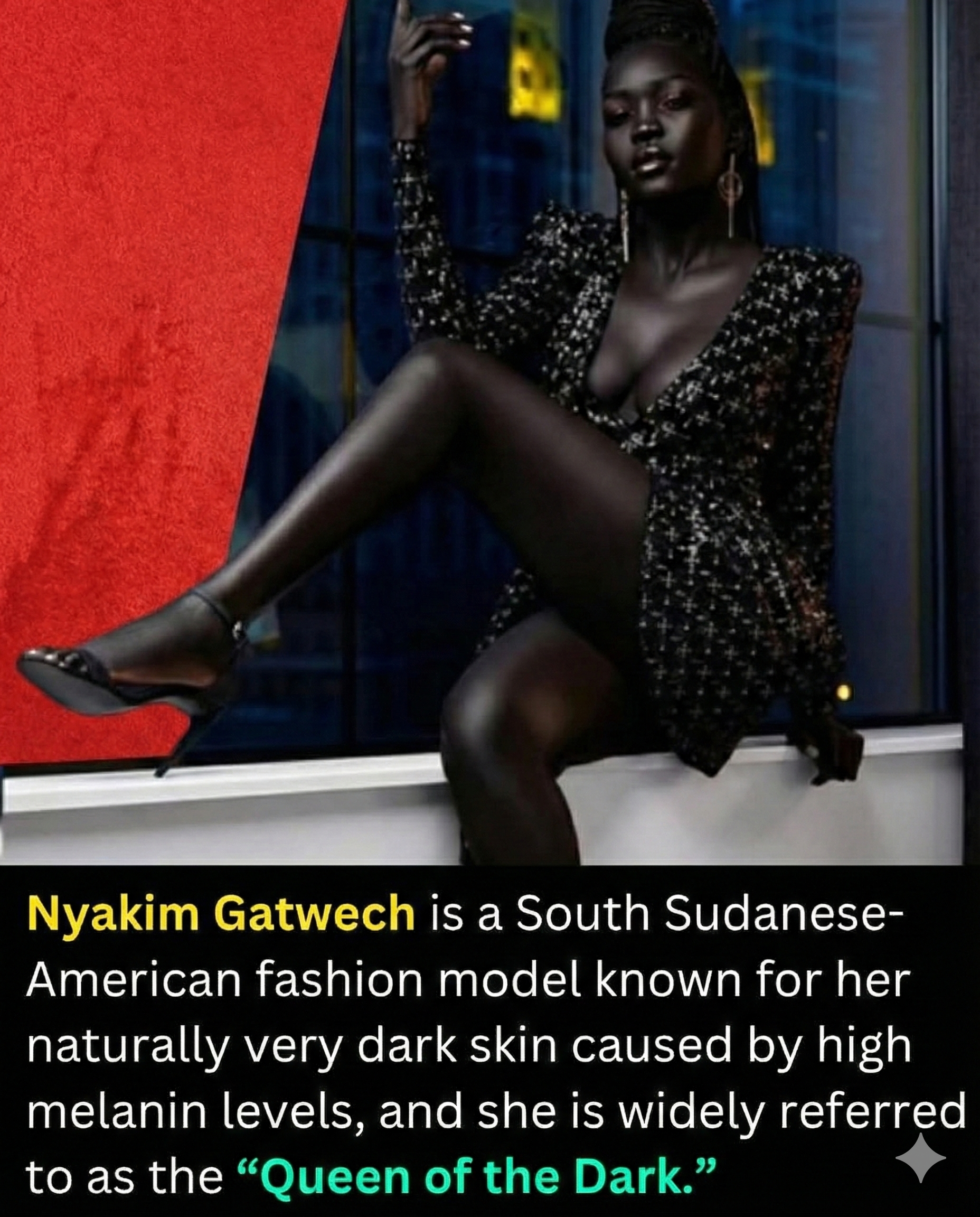 #NyakimGatwech #QueenOfTheDark #MelaninMagic #BeautyRedefined #FashionInspiration #RepresentationMatters