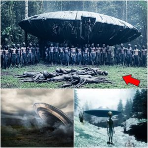 Deep within the world’s most remote rainforests, stories of “silver disks” and “star people” have persisted for generations. Recent viral images appearing to show a massive, saucer-shaped craft embedded in a forest clearing, surrounded by mysterious, identical figures, have reignited the “Ancient Aliens” debate. The haunting quality of these photos—depicting what looks like a mass casualty event or a ceremonial gathering—has captivated millions of viewers.