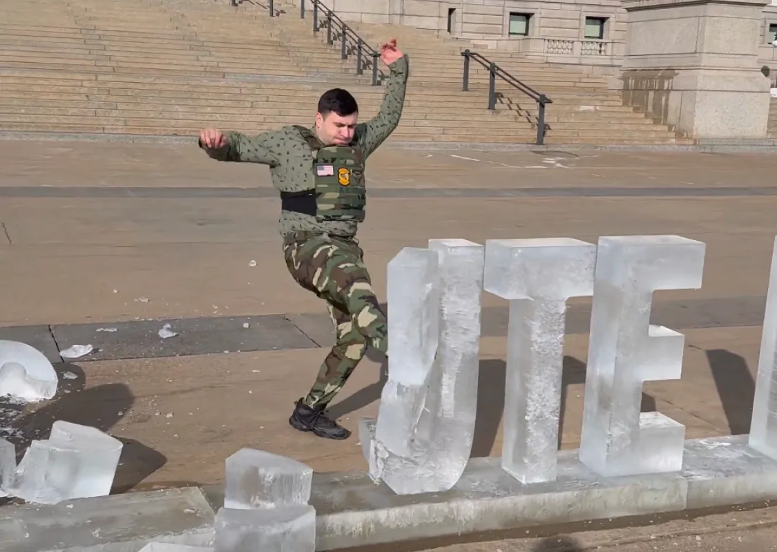 Jake Lang, a controversial figure known for his involvement in the January 6th Capitol riot and his subsequent pardon, has found himself in legal trouble once again. The self-described “political prisoner” and Florida U.S. Senate candidate now faces felony charges that could land him behind bars for 1-5 years. His alleged crime? Kicking over a $6,000 ice sculpture emblazoned with the message “Prosecute ICE” at the Minnesota State Capitol on February 5, 2026.