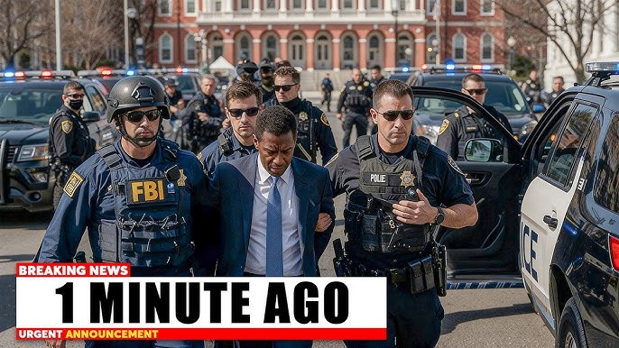 🚨 BREAKING SCENE: A suited man is led away in handcuffs as FBI and local police officers surround him in front of a grand government building, their cruisers and flashing lights sealing off the street. The bold caption “1 MINUTE AGO – URGENT ANNOUNCEMENT” has turned this single frame into a viral flashpoint, with millions of viewers replaying it to guess who the detainee is and what triggered such a heavy response.