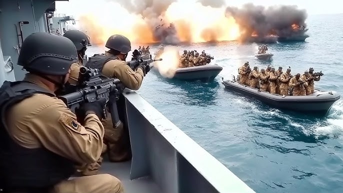 When 60 Somali pirates stormed a $275M cargo ship, they unknowingly triggered a devastating response from the US Military. Watch as the US Military unleashes Navy SEALs and Reaper drones to retake the vessel in a brutal display of force.