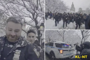 NYPD officers got pelted with snowballs during the fracas on Monday