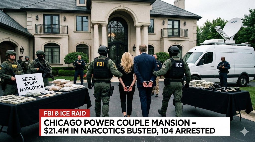 FBI & ICE Raid Chicago Power Couple Mansion – $21.4M in Narcotics Busted, 104 Arrested..hl