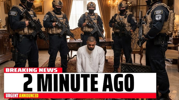 BREAKING NEWS – 2 MINUTES AGO: A dramatic federal operation inside a lavish private residence has stunned viewers as heavily armed agents surround a kneeling man while cameras roll. Crystal chandeliers, heavy curtains and polished furniture form a jarring backdrop to drawn rifles and tactical gear, the scene replayed on loop beneath a blazing banner reading “2 MINUTE AGO – URGENT ANNOUNCED.” Authorities confirm only that today’s raid follows a long‑running investigation and that electronic devices and documents are being removed from the property for analysis.