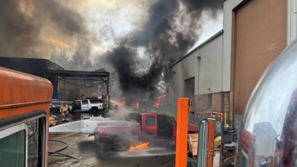 Inferno at Industrial Yard: Massive Blaze Engulfs J&K Salvage in York County