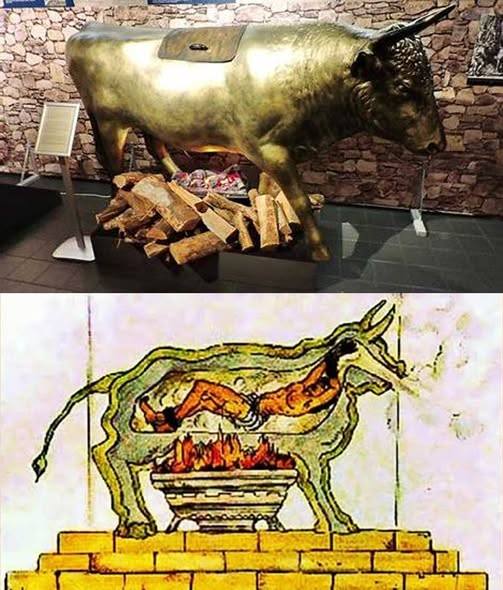 Once the victim was sealed inside, a fire was set beneath the metal. The heat rose slowly, mercilessly.  The bronze grew hot, glowing a deep yellow as the victim inside was suffocated by the overwhelming heat. A life, slowly and painfully, was extinguished in the suffocating chamber of metal.