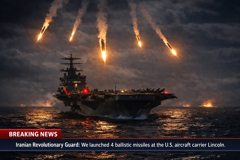Tehran, Iran / Washington, D.C. — In a dramatic escalation of tensions, the Iranian Revolutionary Guard Corps (IRGC) has confirmed that it launched four ballistic missiles at the U.S. aircraft carrier Abraham Lincoln stationed in the Persian Gulf. The attack marks one of the most significant military confrontations between the U.S. and Iran in recent years.