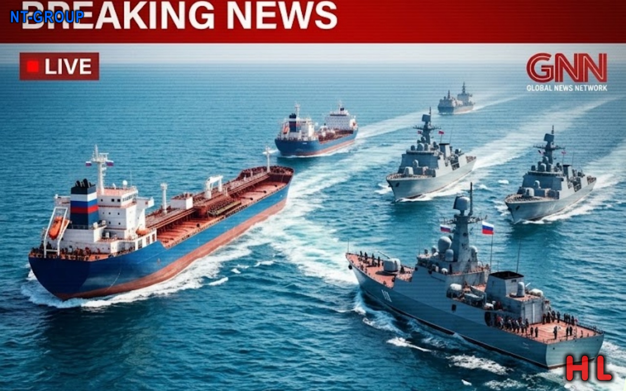 Western intelligence says a convoy of heavily laden Russian tankers abruptly switched off their AIS transponders before veering toward the U.S. fleet in a narrow shipping corridor, escorted at a distance by Russian frigates and long‑range patrol aircraft. On radar, the lumbering giants now sit on near‑collision courses with American warships, forcing the US Navy to thread between asserting freedom of navigation and avoiding a catastrophic ramming incident at sea.