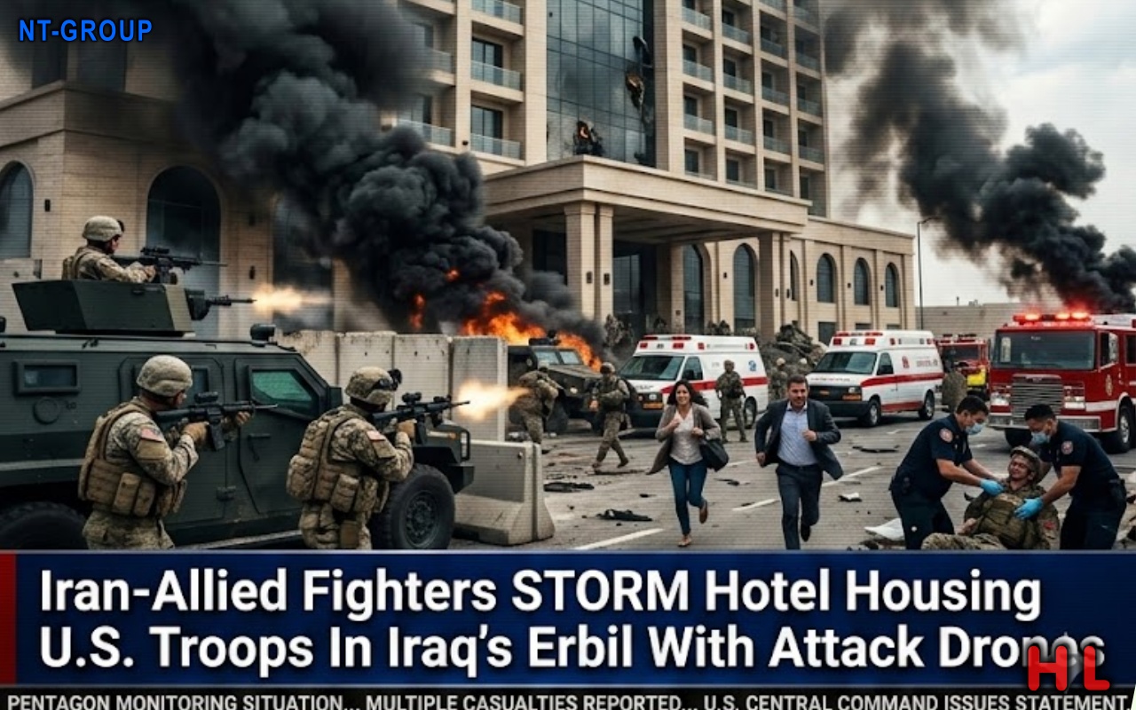 Erbil, Iraqi Kurdistan — What was supposed to be a low‑profile rest stop for U.S. troops turned into a war zone after Iran‑allied fighters stormed a hotel complex in Erbil, using attack drones as cover in one of the boldest strikes on American forces in Iraq in years.
