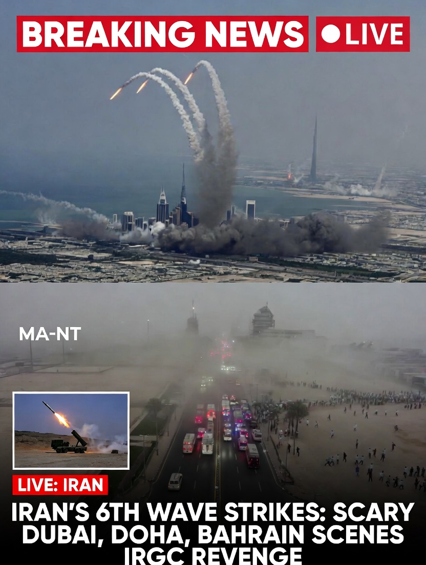 Gulf Region — Iran’s Islamic Revolutionary Guard Corps (IRGC) has initiated a sixth wave of coordinated missile and drone attacks across key Gulf states, triggering alarm in major urban centers including Dubai, Doha, and Bahrain. The latest barrage marks a continued escalation in an ongoing regional campaign that has increasingly drawn civilian areas into its orbit.