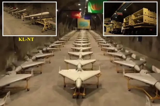 Iran has released a chilling propaganda video showing rows of drones lined up in an underground bunker
