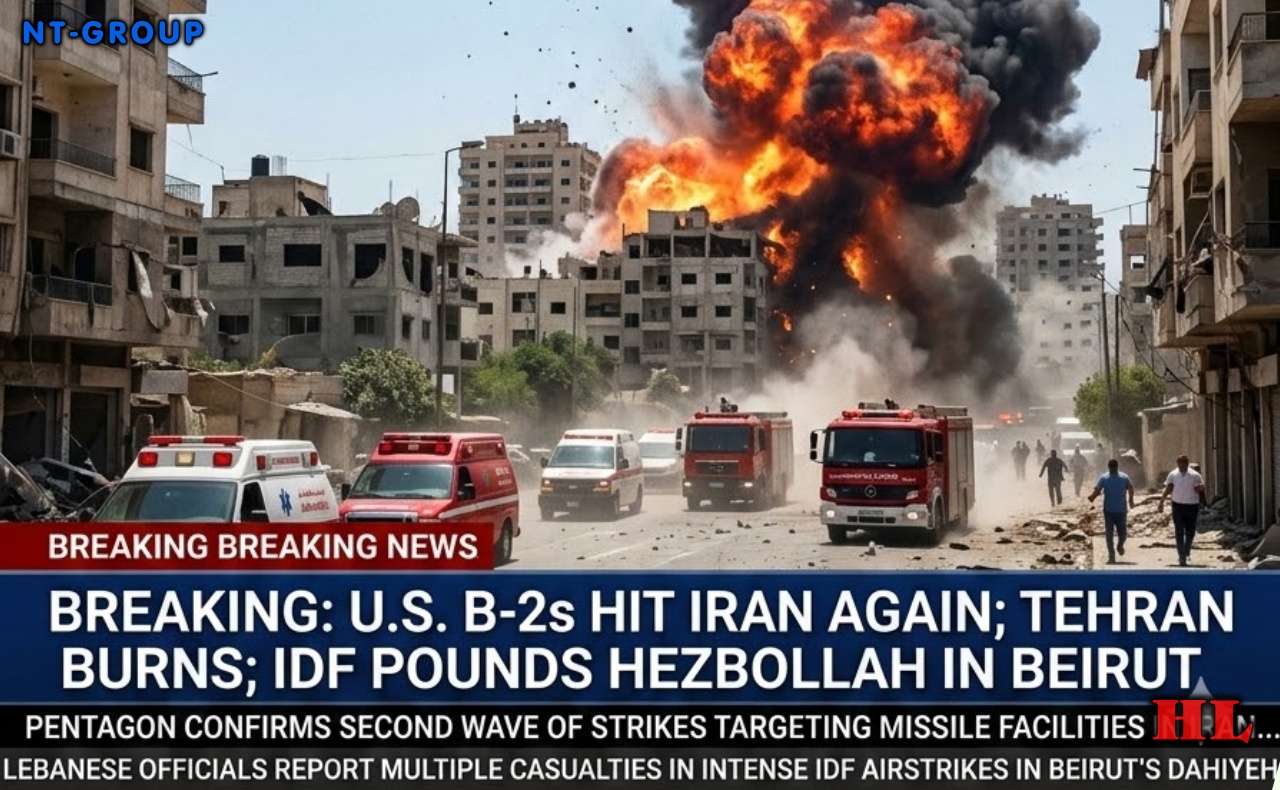 The skies over the Middle East erupted overnight as U.S. B‑2 stealth bombers slammed fresh waves of precision munitions into targets around Tehran, while Israeli jets pounded Hezbollah strongholds in Beirut in a synchronized escalation that has left the region on edge.