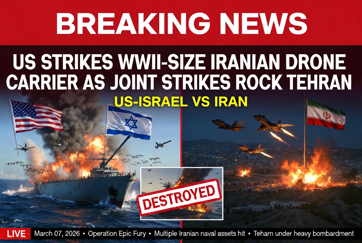 March 2026 – Tehran, Iran — Tensions in the Middle East reached a new level today as the United States launched a major military strike against an Iranian drone carrier, reportedly the size of a World War II-era aircraft carrier. This strike is part of a broader series of coordinated attacks involving joint US-Israeli operations that have rocked the Iranian capital, Tehran.