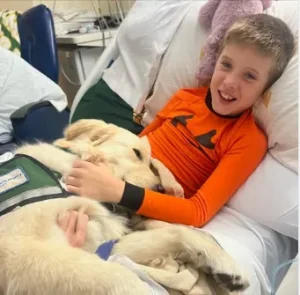 As part of the hospital’s facility dog program, he regularly visits children facing a wide range of medical conditions. Each interaction helps create a more welcoming and supportive hospital environment.