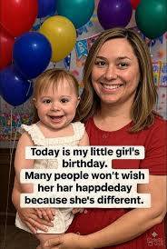 But below this heartwarming scene, a message is shared that cuts straight to the heart: “Today is my little girl’s birthday. Many people won’t wish her a happy birthday because she’s different.”