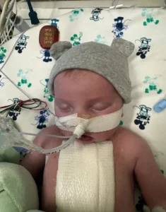 In the days following surgery, Lincoln faced serious complications. His tiny body struggled to recover, and doctors made the critical decision to place him on ECMO (extracorporeal membrane oxygenation)—a life-support system that temporarily takes over the function of the heart and lungs.