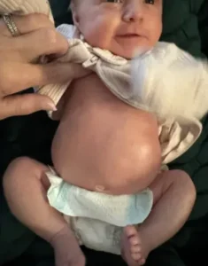 Elaina’s belly became swollen, tight, and even discolored, taking on a purplish tone that alarmed her parents immediately. She hadn’t passed gas. She hadn’t had a bowel movement. And her cries—sharp, persistent, and filled with discomfort—made it clear something was wrong.