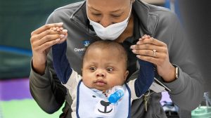 Post-surgery, DJ remained hospitalized to address complications related to prematurity and heart disease. He began a demanding rehabilitation process to regain strength, coordination, and independence. Over 140 days at Cleveland Clinic Children’s Rehabilitation Hospital, DJ relearned to stand, move, and eat independently, supported by the unwavering dedication of his parents.