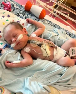 When Livie arrived at 35 weeks, her life began not with quiet moments of rest, but with urgent medical care. She was immediately taken to Children’s Healthcare of Atlanta to prepare for life-saving surgery. Her parents barely had time to hold her, their hearts heavy with worry.