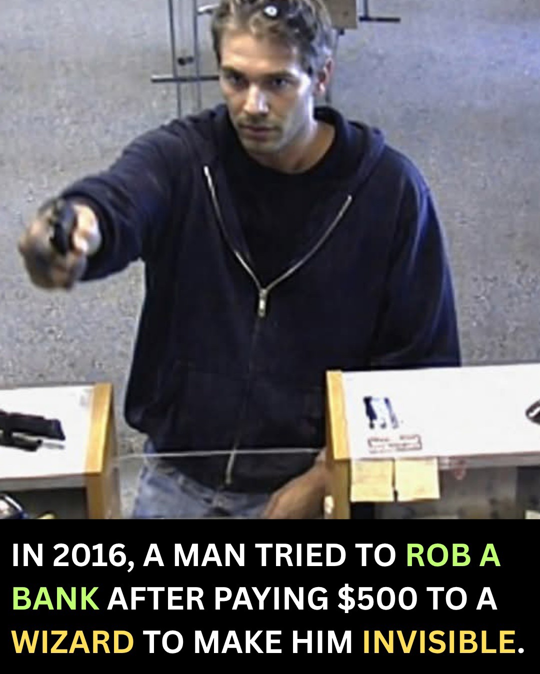 It did not go as planned. The customers could see him perfectly well, and they quickly overpowered him on the spot.