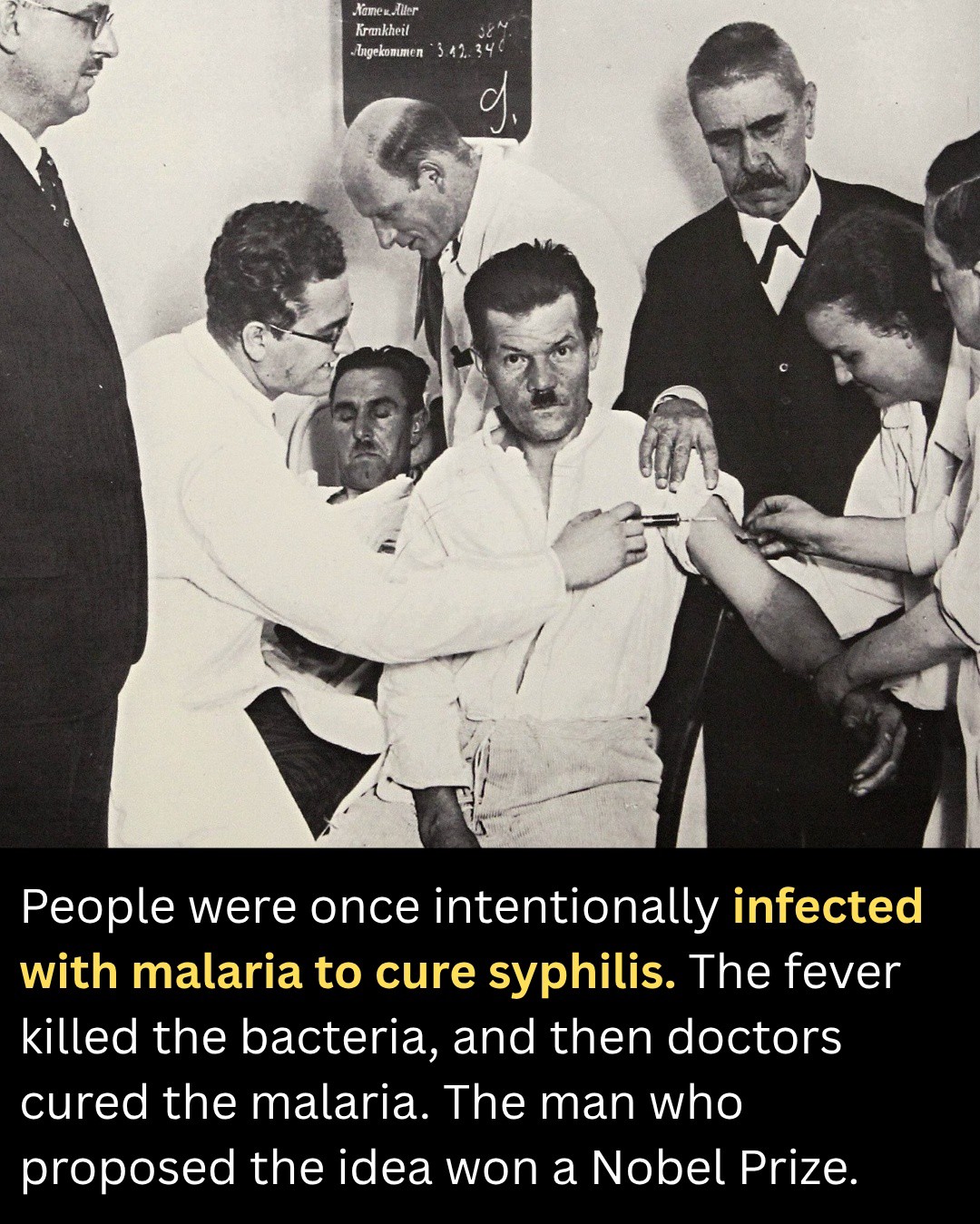 In 1917, Julius Wagner-Jauregg proposed deliberately infecting syphilis patients with malaria. His reasoning was surprisingly logical: malaria causes intense, repeated fever spikes, and high fevers are hostile to the syphilis bacteria. If the fever didn’t kill the infection outright, it could weaken it enough to give the patient a fighting chance. And crucially, doctors already knew how to treat malaria with quinine — so the plan had an exit strategy.