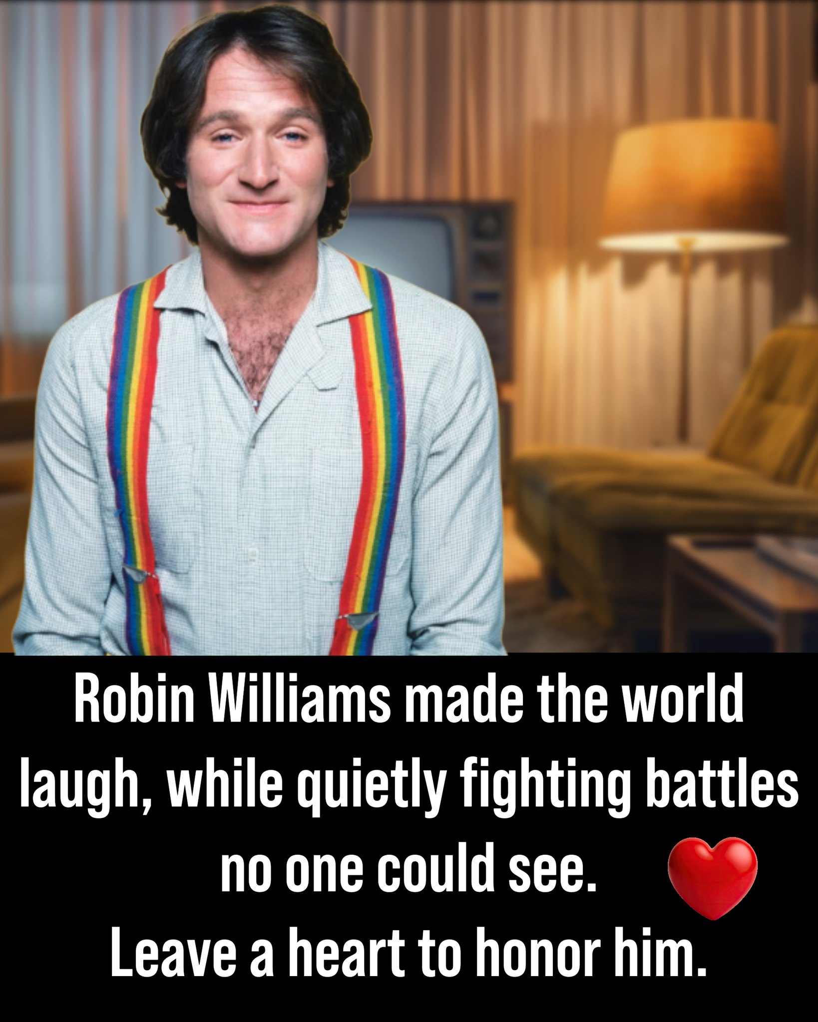 Today, Robin Williams is remembered not only for making millions laugh uncontrollably, but also as a powerful reminder that even the brightest lights can carry invisible battles — and still shine brilliantly for the world. 💫