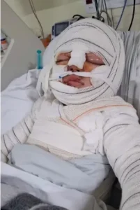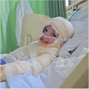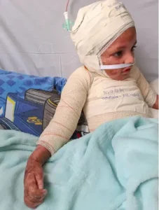His first surgery came within hours of arrival. Burn specialists worked urgently, performing complex procedures to stabilize his condition and begin repairing the damage. Skin grafts became essential, as large areas of his body had been severely affected.