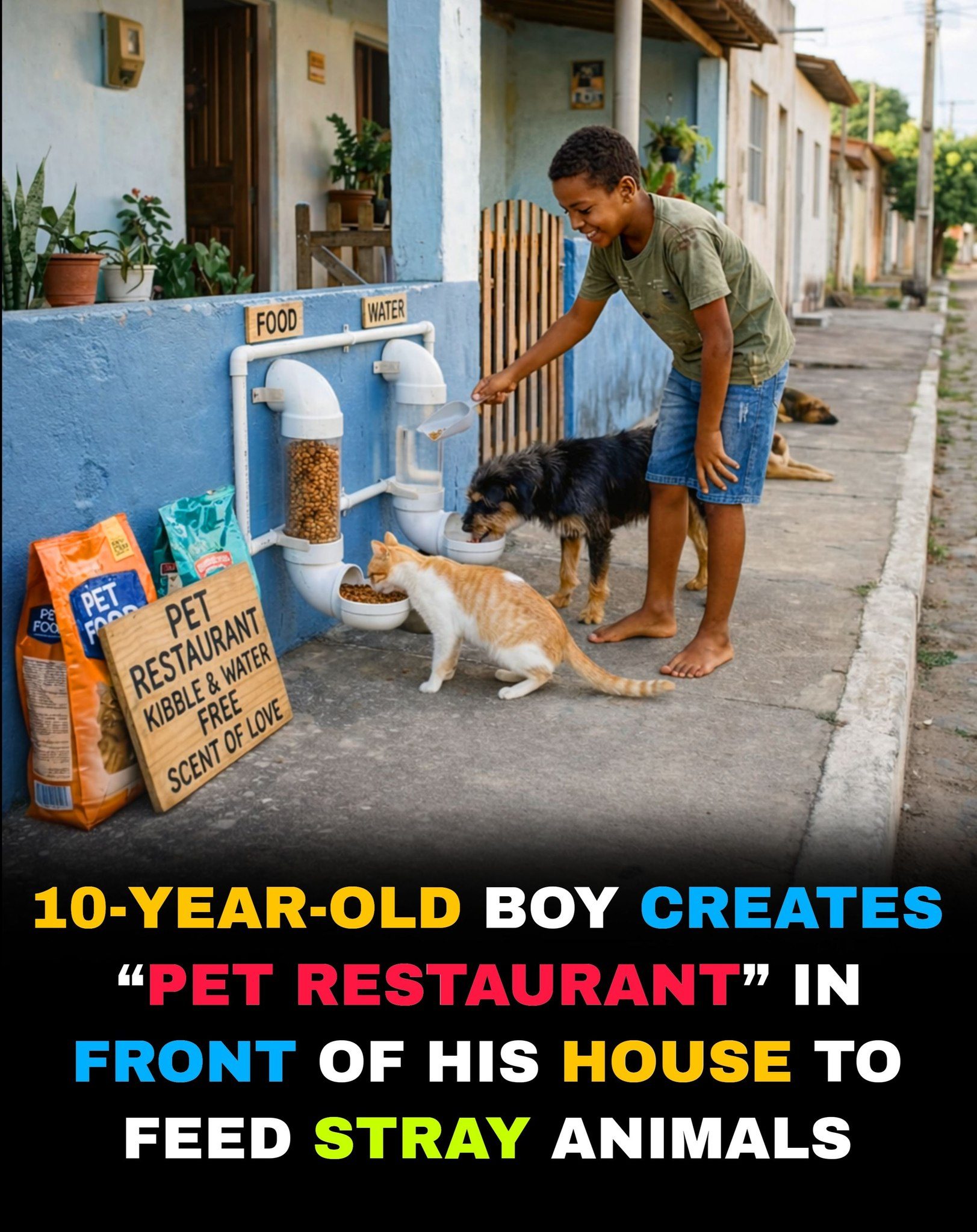At first, it was just his small act of kindness. But soon, something beautiful happened—neighbors began to notice. Touched by his dedication, people started donating pet food, water bowls, and supplies. Some even helped improve the feeding stations. Slowly, the “pet restaurant” became more than a child’s project—it became a shared mission of care and responsibility for every living soul on the street.