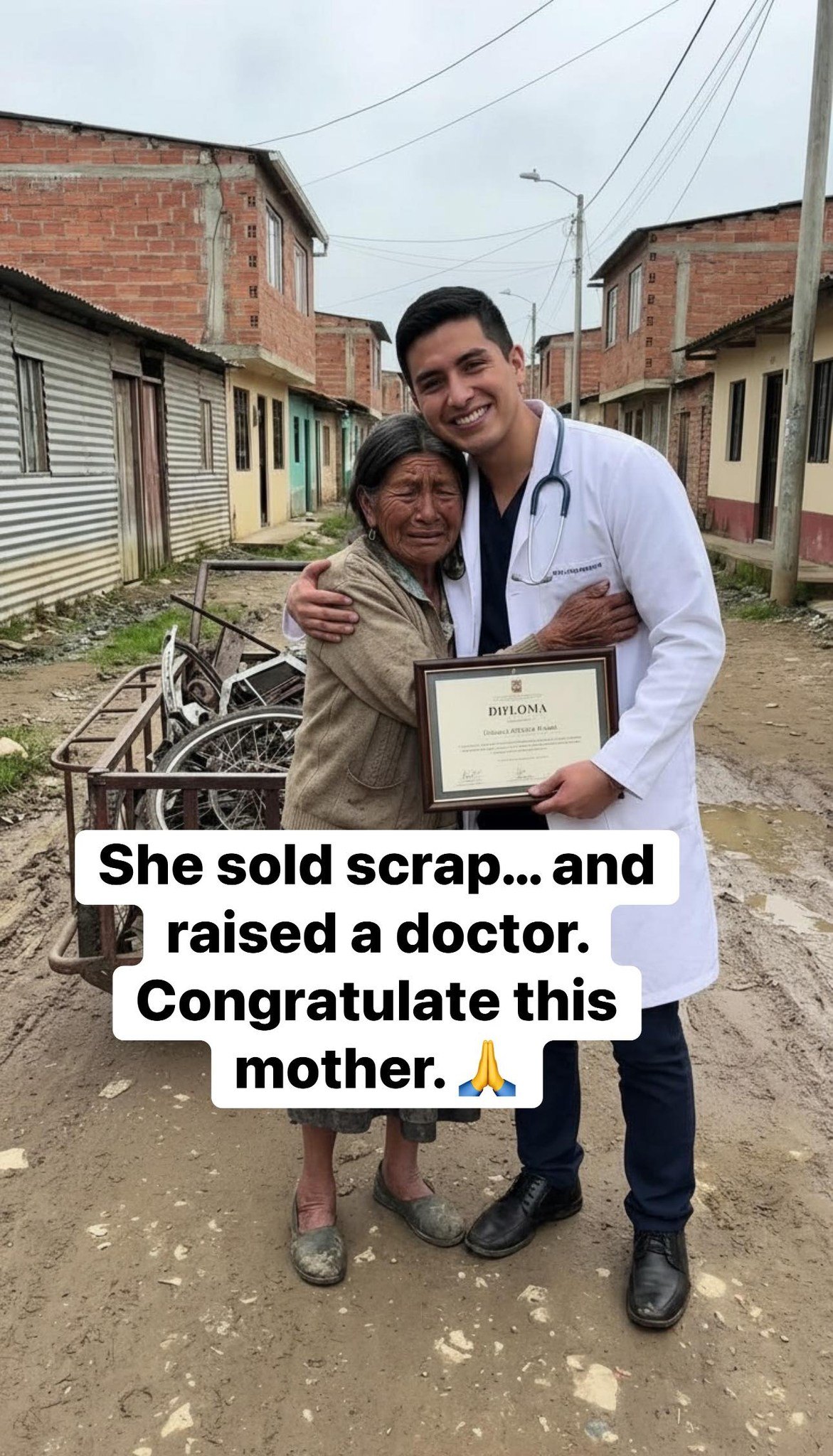 Today, he stands before her in a white coat, holding his diploma 🎓✨