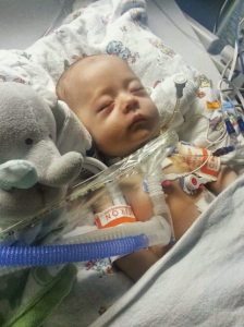 What followed was a series of hospital visits that would quickly redefine the family’s life. Early interventions included a failed supraglottoplasty, the placement of a nasogastric (NG) tube to help with feeding, and eventually, at just 11 and a half weeks old, a tracheostomy and gastrostomy tube (g-tube) to support his breathing and nutrition.