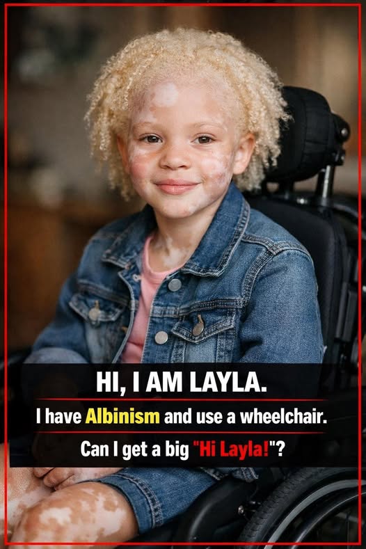 Layla lives with albinism and uses a wheelchair — but those are just small parts of who she is. What truly stands out is her courage, her warmth, and the way she embraces life with such a bright, unstoppable spirit.