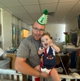 At just nine days old, he underwent his first major surgery to repair the CDH. Surgeons worked carefully to reposition his organs and placed a patch where the diaphragm could not fully close—giving his body room to grow.