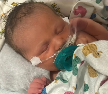 Although she was born full-term, everything changed in the moments after her arrival. During delivery, she inhaled amniotic fluid — a complication that quickly affected her ability to breathe on her own. What should have been a joyful first cry became a race against time, as doctors worked urgently to stabilize her oxygen levels. 🏥