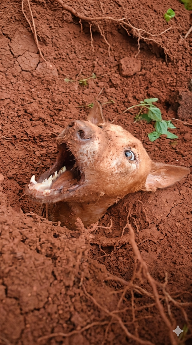 A mother dog, her body half-sunken, trembling from exhaustion. Every small movement only pulled her deeper, draining what little strength she had left. She could have tried to struggle free… but she didn’t.