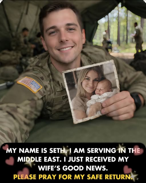 Thousands of miles from home, under unfamiliar skies, Seth carries something more valuable than anything else—a simple photo of his wife and newborn child. 📸 A reminder of the life waiting for him beyond the uniform.