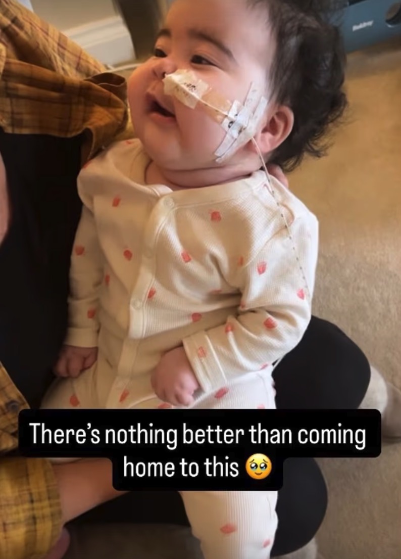 The singer, 34, who first revealed in January that her now nine-month-old twins Ocean and Story had been diagnosed with the rare and life-limiting condition, posted a heartwarming video showing one of her babies giggling while being cradled by a friend — a feeding tube visible in her nose.