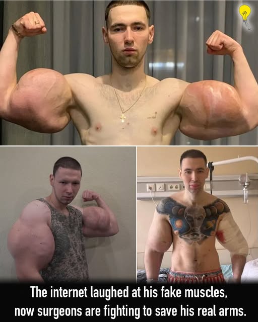 Today, Kirill is no longer seeking attention. He’s fighting for his life, and for his arms. The very muscles he once tried to inflate are now betraying him. Doctors have warned him that the infected, rock-hard masses inside his biceps are destroying the real tissue underneath. If the dead tissue continues to spread, amputation could be the only option. Some specialists fear the damage is already beyond repair.