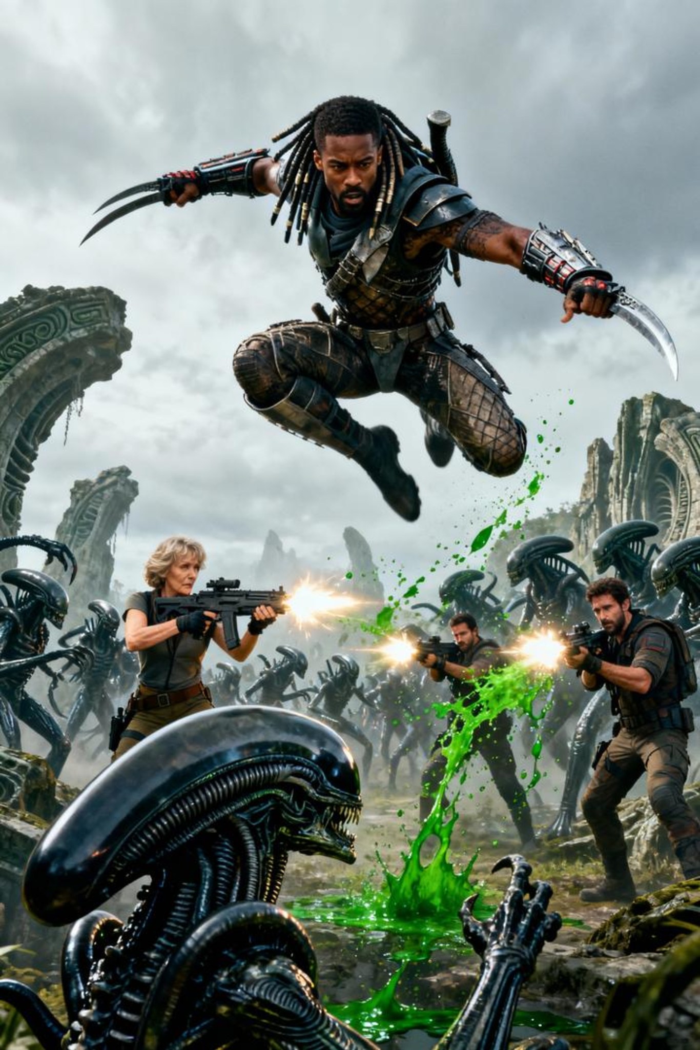 In the eerie, desolate remains of a shattered world, Ripley and her crew are plunged into the heart of an ancient conflict, where every step could be their last. As Alien and Predator clash in a battle for supremacy, the lines between enemy and ally blur, and fate pushes them to the ultimate test. The beasts of war have evolved. Will humanity survive, or will they become just another casualty in the endless cycle of destruction?